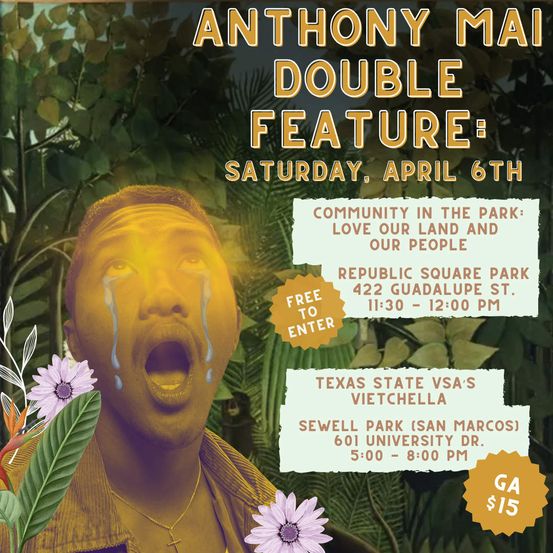 While traveling the miles of mild southern summers, Tony bared himself naked in an acapellic battleground of Austin - “The Music Capital of the World” - Texas. While debuting on the stages of a weird and wild heart Austin, Tony had the privilege of connecting with fans at Convergent Arts Arts Showcase, Texas State University Vietnamese Student Association’s Vietchella Music and Arts Festival, Community In the Park at Republic Square, Willie Mae Kirk Branch at Austin Public Library, among more.